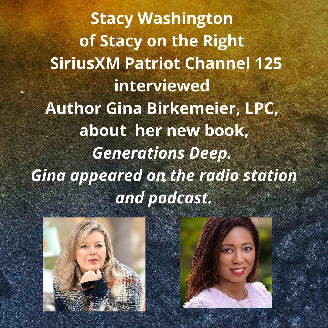 Gina was interviewed on April 1 by Stacy Washington of Stacy on the Right — a nightly radio show on SiriusXM’s Patriot Channel. The interview went so well that Stacy invited her to be a guest on her podcast, as well. You can listen here.